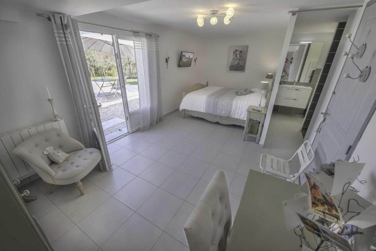 La chambre de Charme – Indépendance, élégance et accès direct à la piscine Située en rez-de-chaussée , avec accès direct à la piscine.
